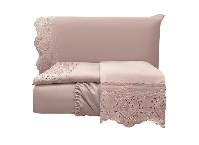 Jogo Lençol King Passione Bordado Inglês 4 pç Rosé