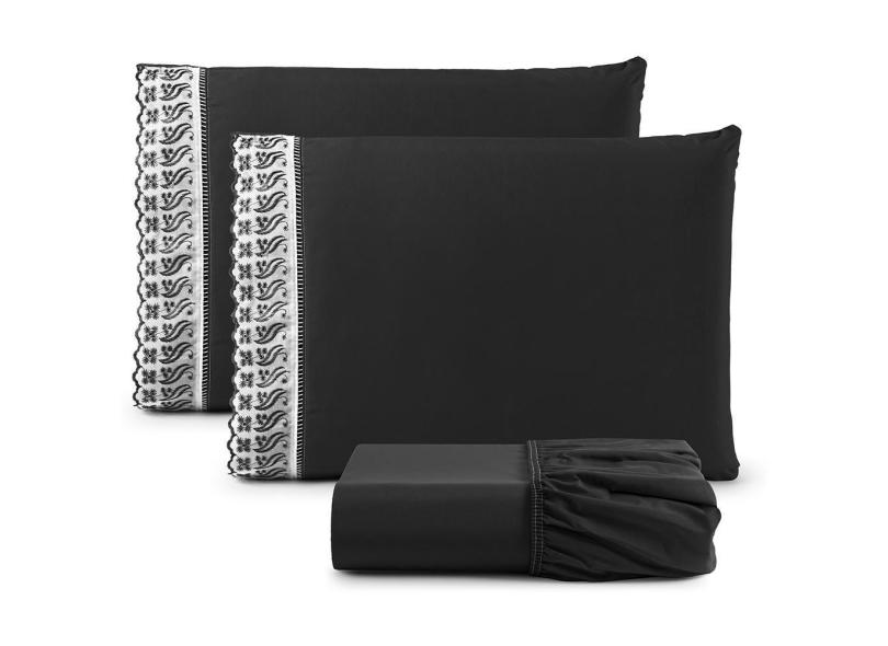 O menor preço encontrado no Brasil para Jogo Lençol King Suave Barrado Lese 3 Peças Barato - Preto atualmente é R$ 110,52.