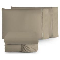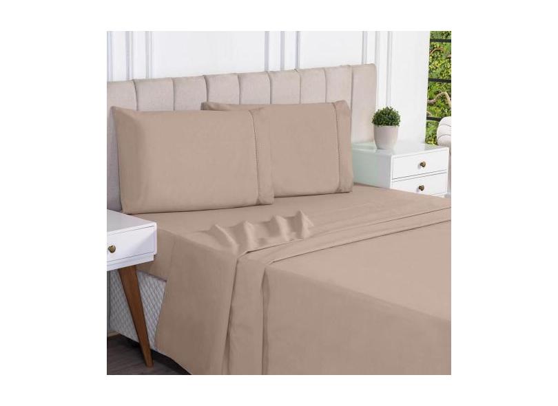 Jogo Lençol Liso King 4 Peças 180 Fios 100% Algodão - Caqui - Sucadu E