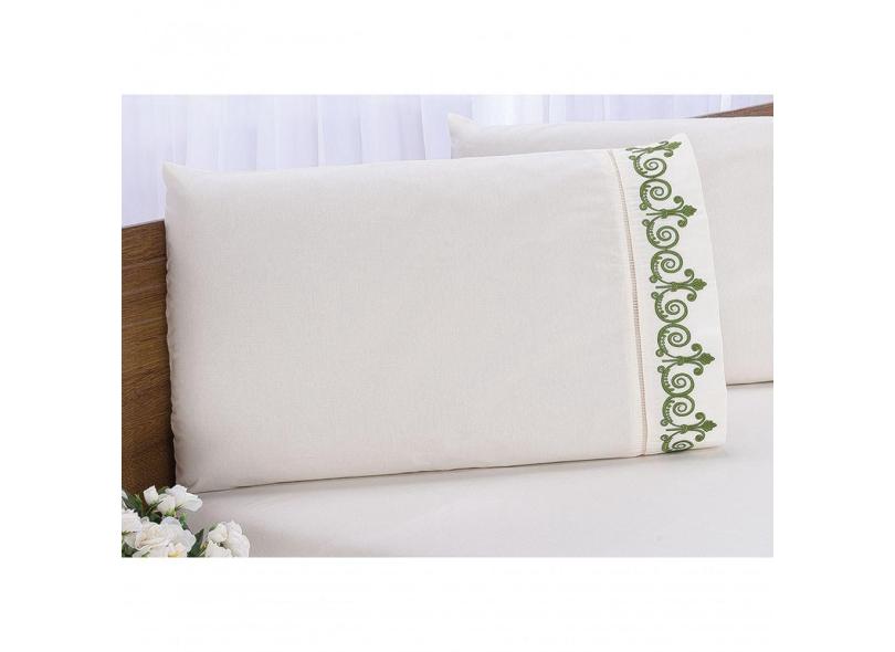 Jogo Lençol Quarto Casal King Bordado 3peças Palha Com Verde