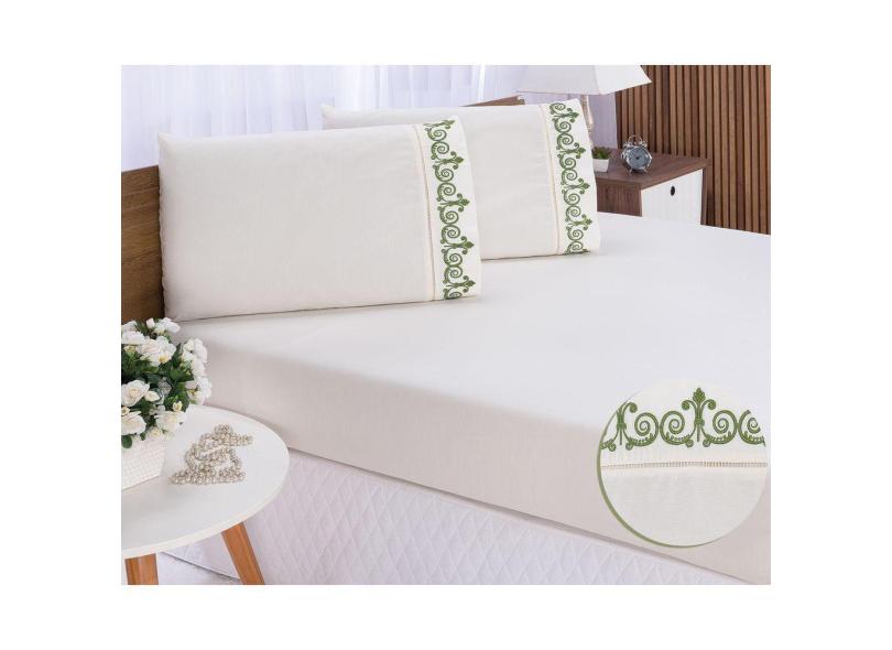 Jogo lençol quarto casal Padrão bordado 3peça Palha Verde