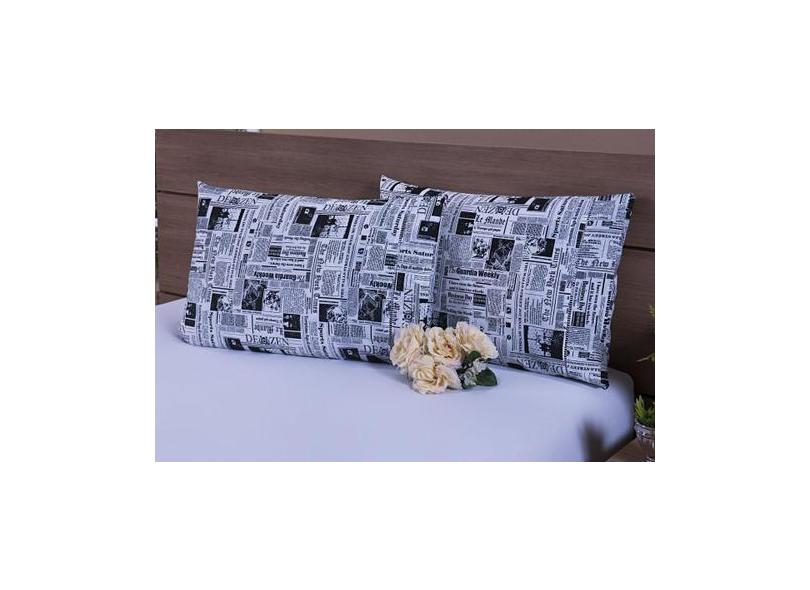 Jogo Lençol Solteiro 2 Peças 180 Fios Jornal Branco Barrado - Mtr Enxo