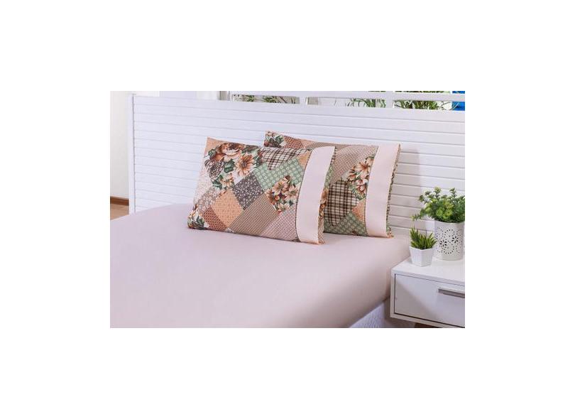 Jogo Lençol Solteiro 2 Peças 180 Fios Patchwork Caqui - Mtr Enxovais L