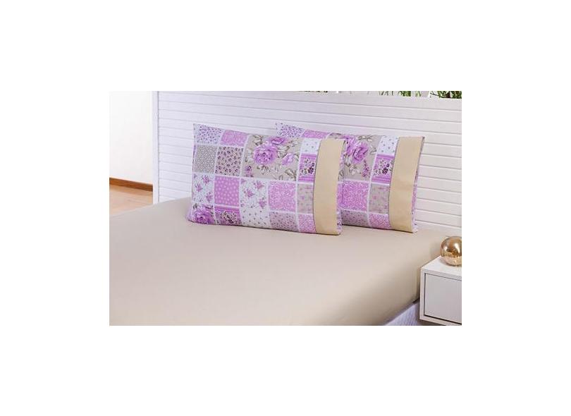Jogo Lençol Solteiro 2 Peças 180 Fios Patchwork Rosé Barrado - Mtr Enx
