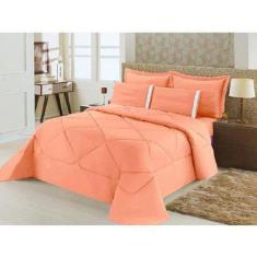 Kit Edredom + Lençol Dupla Face Casal Queen 6 Pç Salmão