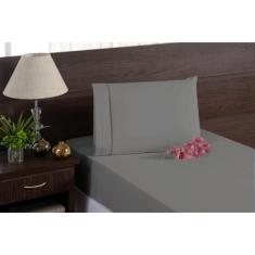 Lençol 100% Algodão 2 Peças Cinza Solteiro Percal 200 Fios - Beatriz E