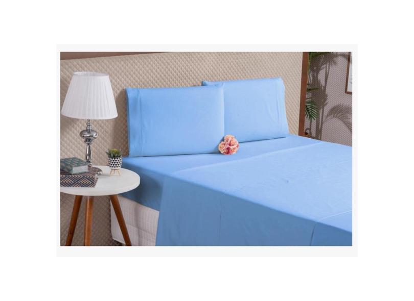 Lençol 4 Peças Algodão Casal Padrão Azul Percal 180 Fios