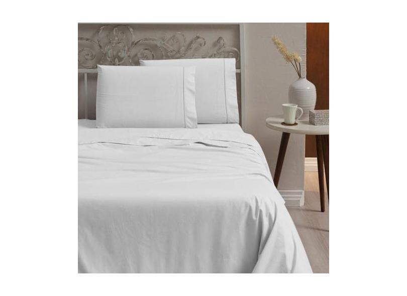Lençol avulso casal queen c/ elástico 100% algodão 200 fios branco - C
