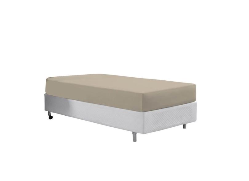 Lençol Avulso Com Elástico Cama Solteiro 400 Fios Macio Bege