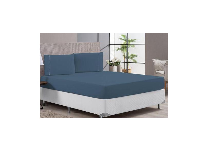 Lençol Cama King Size Cor Azul Macio 400F 3 Peças - Beatriz Enxovais