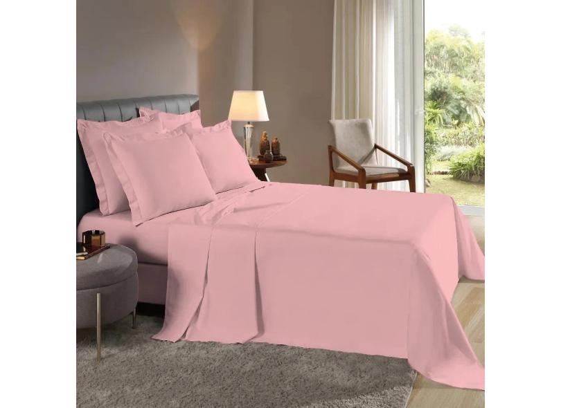 Lençol Casal 3 Pçs Fronhas Abas Percal 200 Fios Algodão Rosê