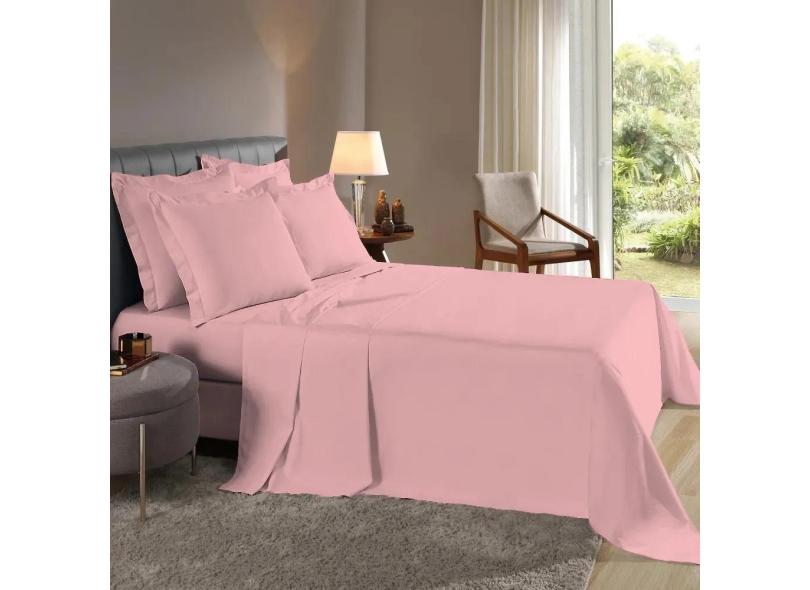 Lençol Casal 40cm 4 pçs Fronhas c/ Abas Percal 200 Fios 100% Algodão