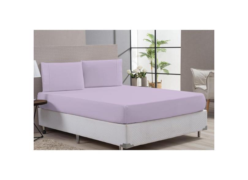 Lençol Casal King Algodão 3 Peças Lilás Hotel Hospedaria