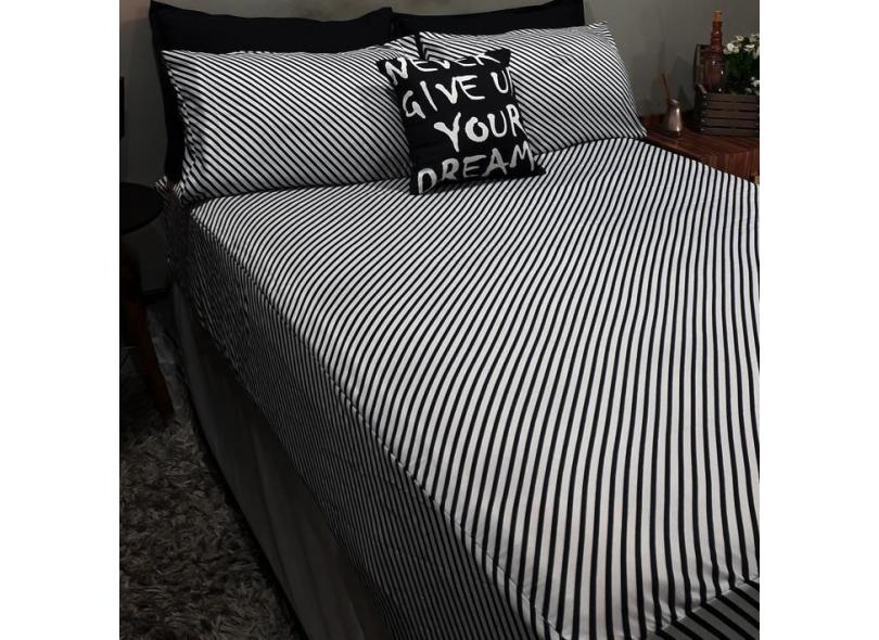 Lençol Com Elástico Casal Comum 4 Un Stripe Almofada Decor