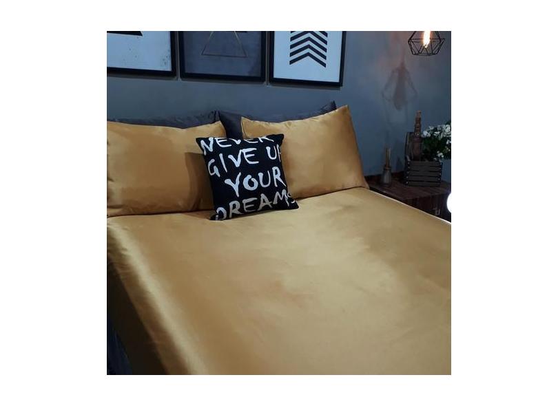 Lençol Com Elástico Solteiro 4 Un Cetim Dourado Com Almofada - Casa Da