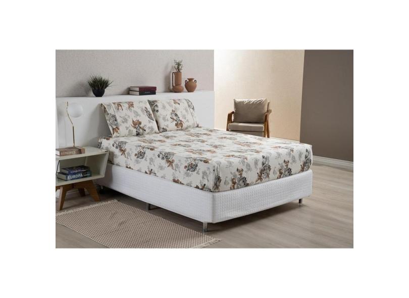 Lençol Com Fronhas Ponto Palito Queen Cama Box 3 Peças Cinza