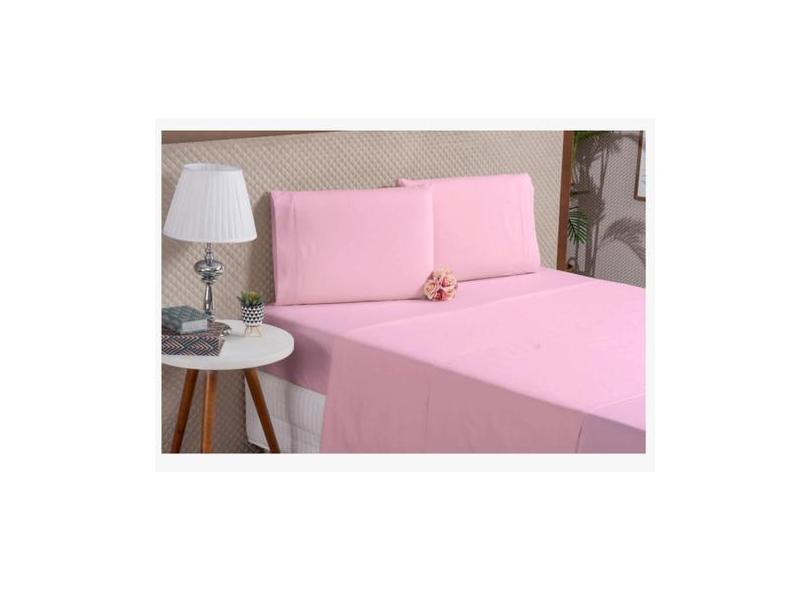 Lençol De Algodão 4 Peças Rosa King Percal 180 Fios Percal - Beatriz E
