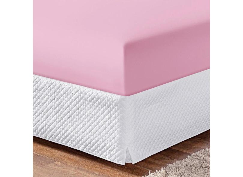 Lençol De Baixo Com Elástico Casal Padrão 180 Fios Rosa