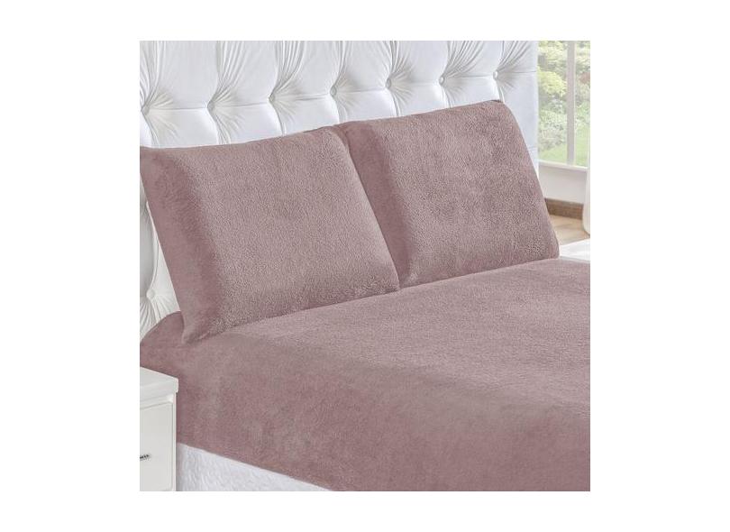 Lençol De Cama Queen Rosê 3 Peças Liso Com Elástico 1,98M X 1,58M X 30