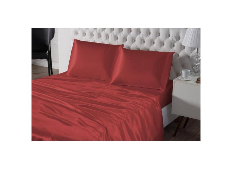 Lençol De Seda 4 Peças Casal King Vermelho Cetim