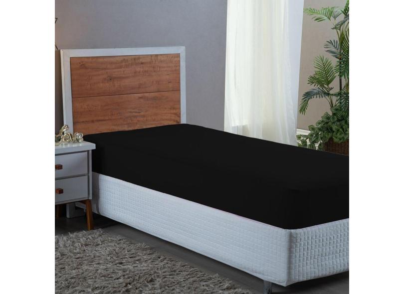 Lençol de Solteiro Avulso Com Elástico Premium Micro Percal 400 Fios Liso Preto