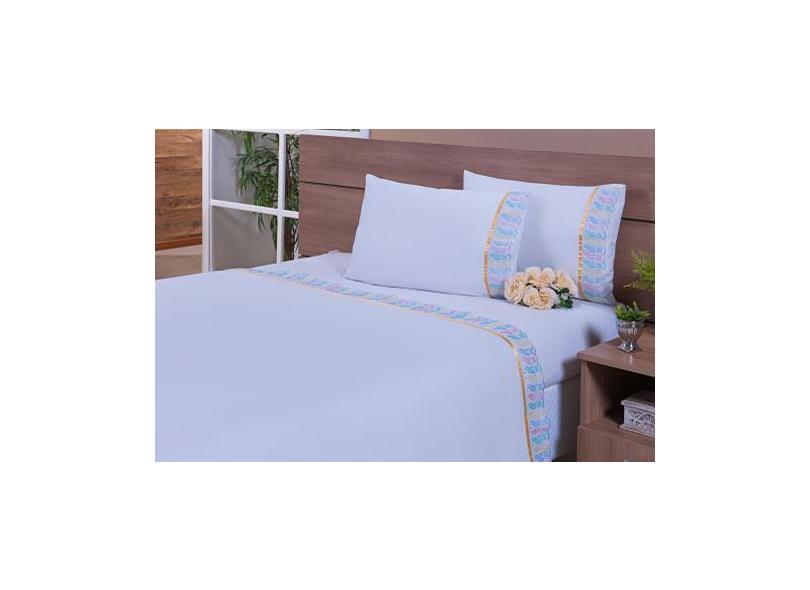 Lençol De Viuva Com Leze Colorido Dourado 4 Peças 100% Algodão 200Fios