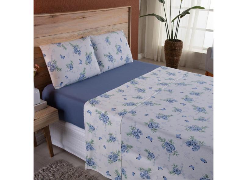 Lençol King Em Malha Fio Penteado Algodão 4 Peças - Azul Top