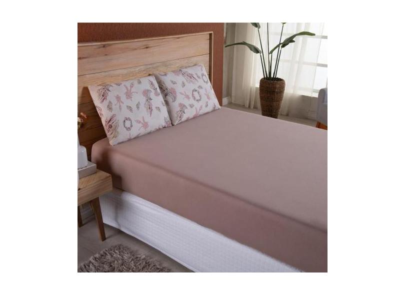 Lençol King Malha Fio Penteado Algodão 3 Peças - Cáqui - Casa Show Enx