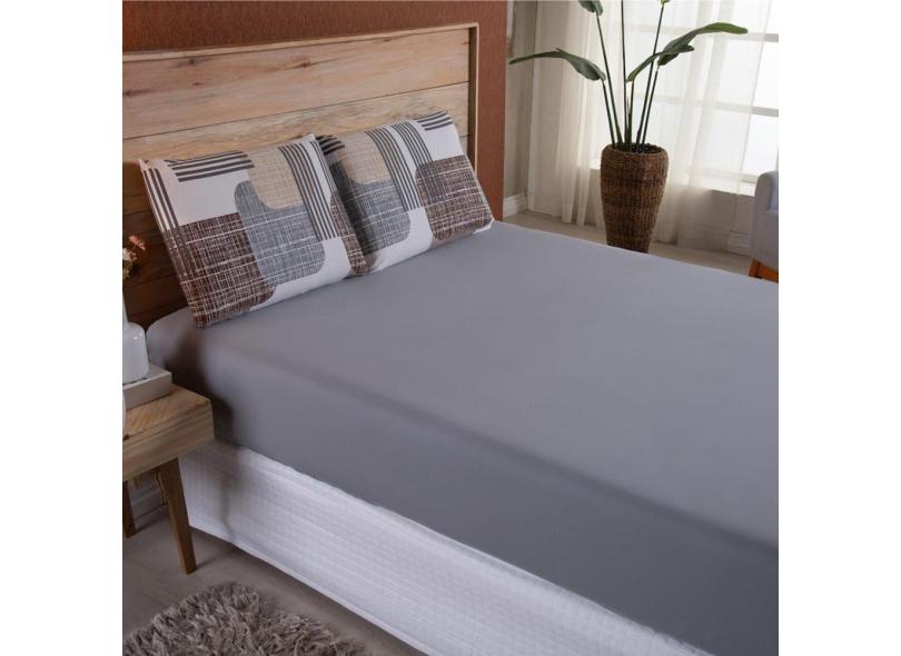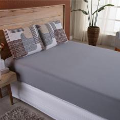 Lençol King Malha Fio Penteado Algodão 3 Peças - Cinza