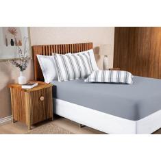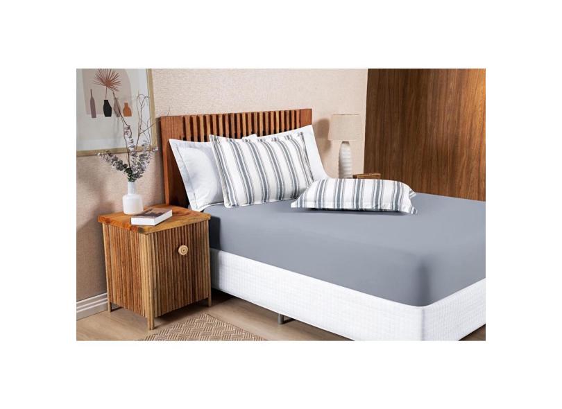 Lençol Malha Algodão Solteiro Marim 2Pç Antialérgico Cinza
