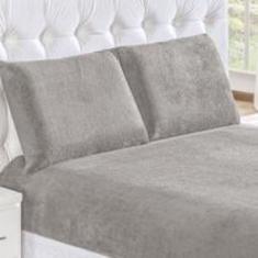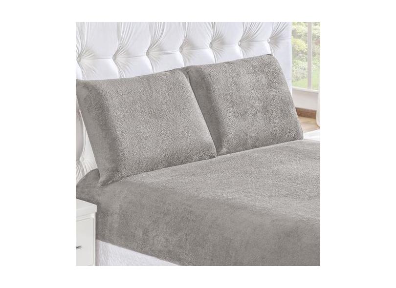 Lençol Para Cama Queen Cinza 3 Peças Liso Com Elástico 1,98M X 1,58M X