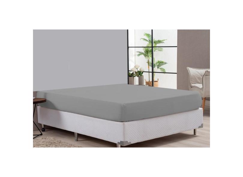 Lençol Percal 180 Fios Cinza 80% Algodão Casal Padrão