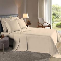 Lençol Queen 3 Pçs Fronhas Abas Percal Flex 400 Fios Cáqui - Rafaloro
