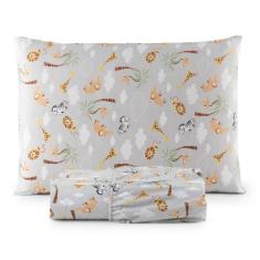 Lençol Solteiro 2 Peças Estampado Safari 100% Algodão Infantil Macio e