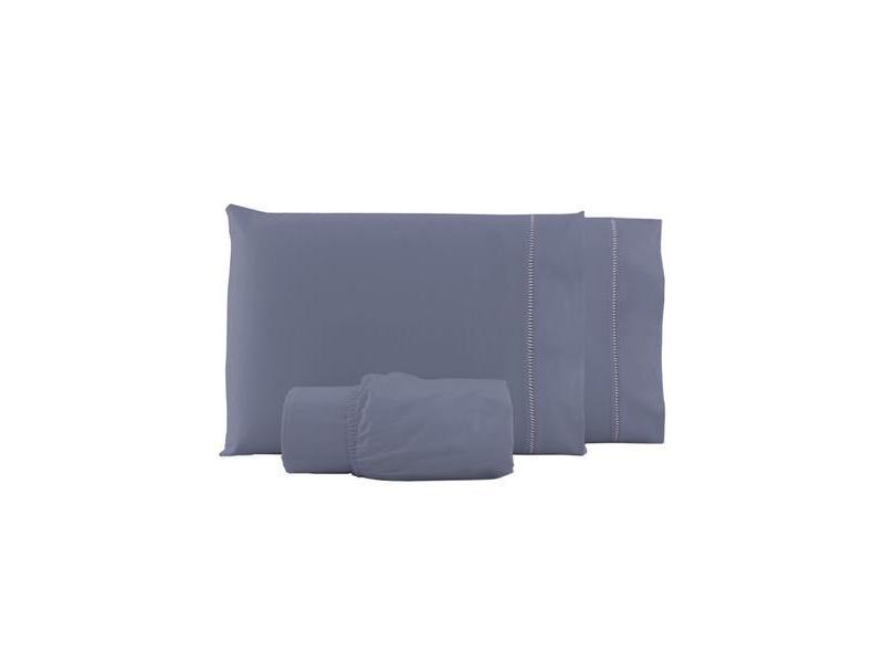 Lençol Solteiro 3 Peças Percal 300 Fios 100% Algodão Azul - Armazem Do