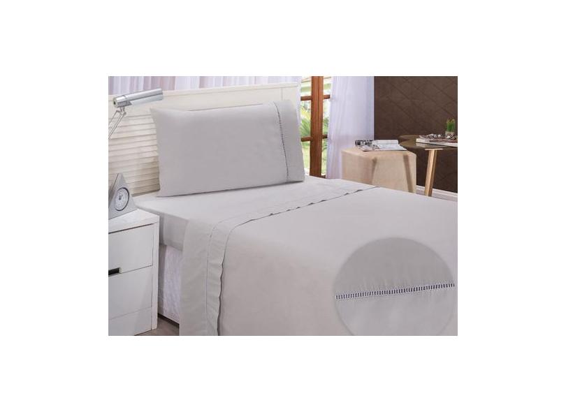 Lençol Solteiro Algodão 180 Fios Ponto Palito 3 Pçs Cinza - Jandis Bab