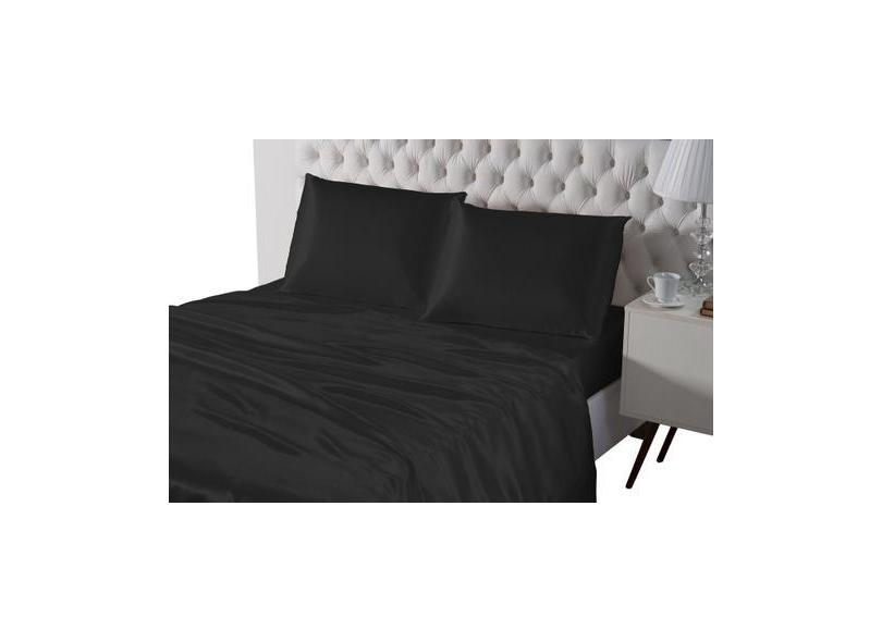Lençol Solteiro Com Elástico Avulso Cetim Preto Flobellle - Flobelle
