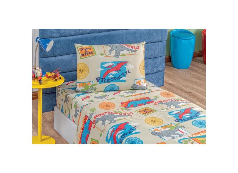 Lençol Solteiro Infantil Com Elástico Dino 3 Peças