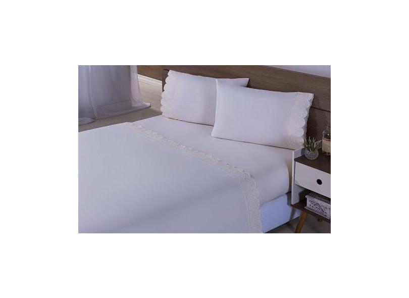 Lençol Viúva 100% Algodão 200 Fios Bege 4 Peças - Thais Enxovais