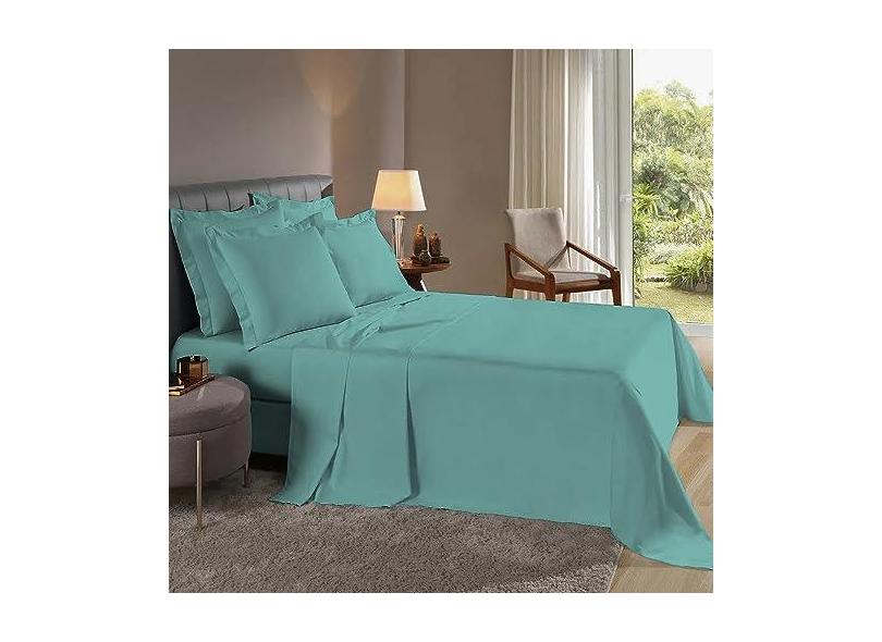 Lençol Viúvo 3 Pçs Abas Percal Flex 400 Fios Macio (Verde Tiffany)