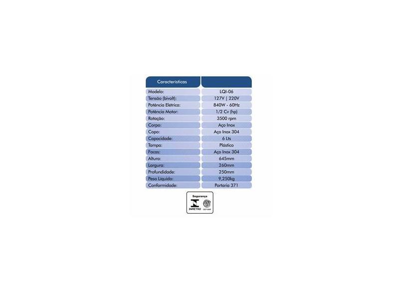 Liquidificador Industrial Comercial 6Lts 840W 3500Rpm Bivolt