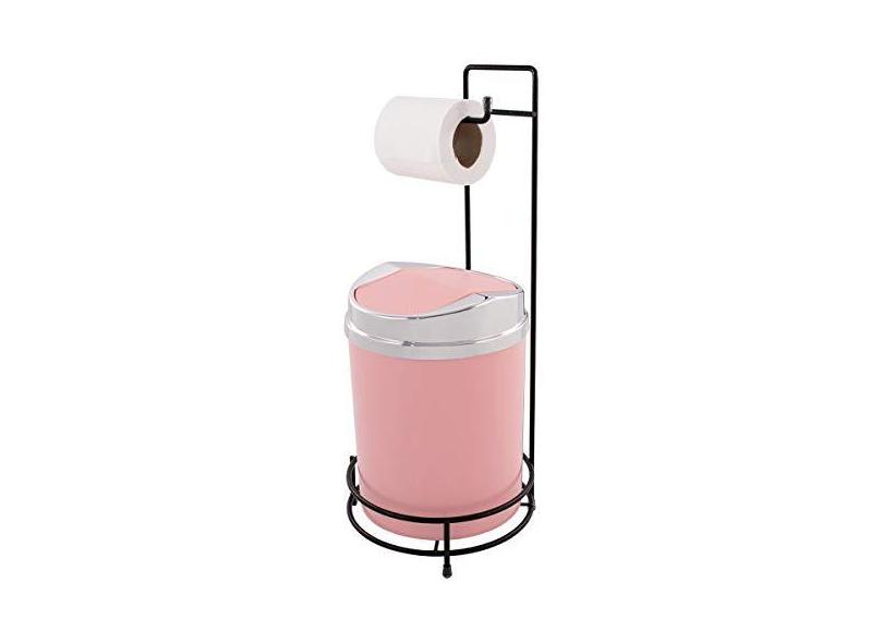 Suporte Para Papel Higiênico Lixeira 5 Litros Basculante Prata