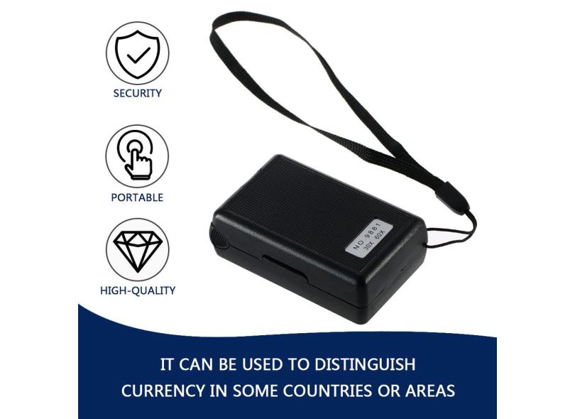 30X 60X bolso Lupa Microscópio Jóias Lupa LED Light Moeda uv Vidro