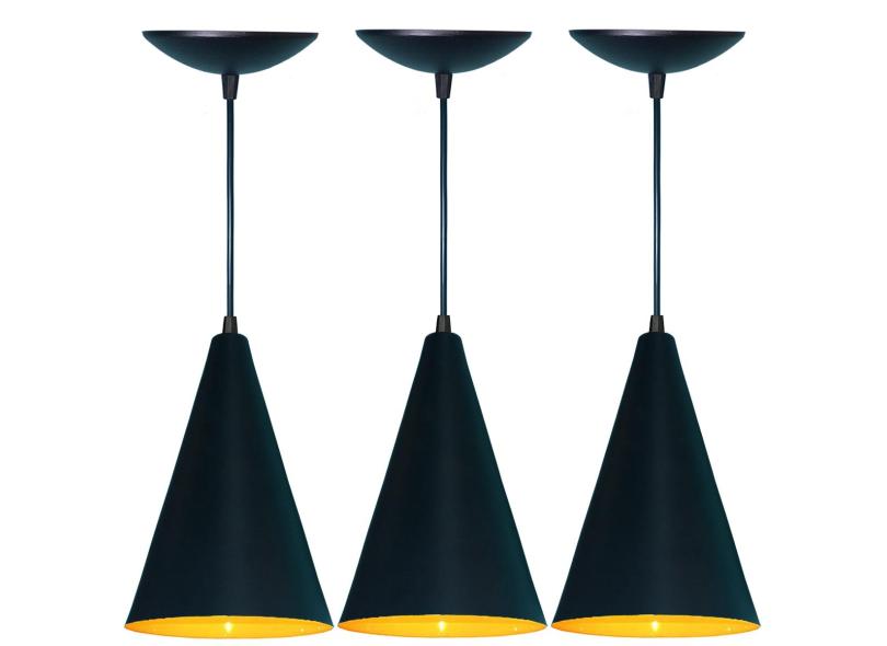 Kit 03 Pendentes Cone Em Alumínio -Cor Fosco E