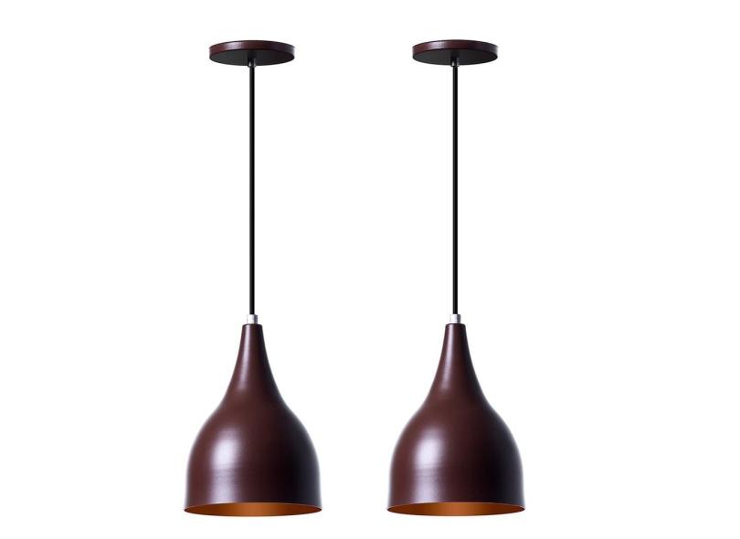 Kit 2 Lustres Pendente Gota Marrom Alumínio Decorações