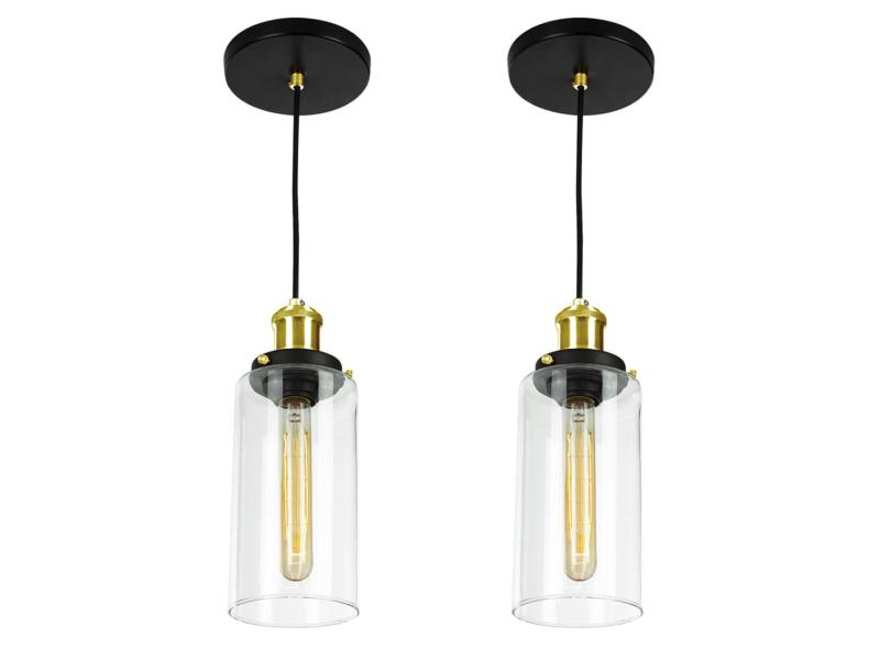 Kit 2 Lustres Pendentes Château Cilindrico Vidro Gold