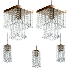 Kit 2 Pendentes Marrycrillic + 3 Pendentes Clearcrilic Cobre
