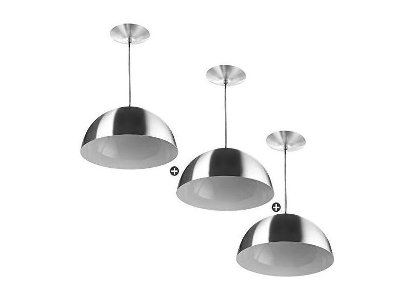 Kit 3 Lustres Pendente Meia Lua 30cm Alumínio Soquete E-27 Escovado