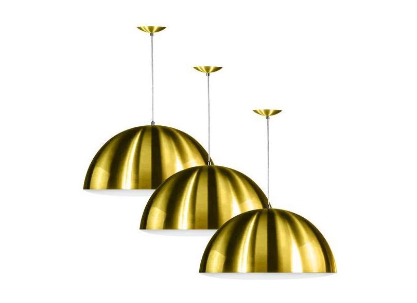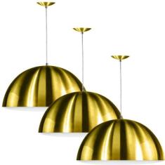 O menor preço encontrado no Brasil para Kit 3 Lustres Pendente Meia Lua 40cm Alumínio MarryLuz atualmente é R$ 253,16.