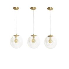 Kit 3 Pendente Redondo Esfera 30Cm E Vidro Cristal Madelustre